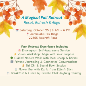 A chance to reset, refresh, and realign with your vision in the bucolic setting of Middleburg.