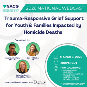 Blue Ridge Care is hosting a FREE watch event for the 2026 NACG National Webcast: Trauma-Responsive Grief Support for Youth & Families Impacted by Homicide.