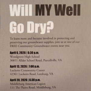 To learn more and become involved in protecting and preserving our groundwater, join the Loudoun Coalition for a FREE Community Groundwater meeting in Middleburg!