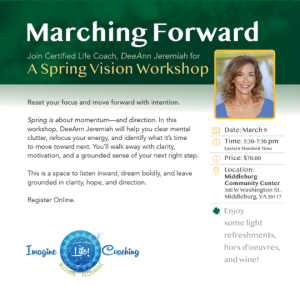 Reset your focus and move forward with intention. Spring is about momentum and direction. In this two -hour workshop, DeeAnn Jeremiah will help you clear mental clutter, refocus your energy and identify what it’s time to move toward next. You’ll walk away with clarity, motivation, and a grounded sense of your next right step. Enjoy refreshments, community, and powerful exercises and vision board activities to MOVE FORWARD!