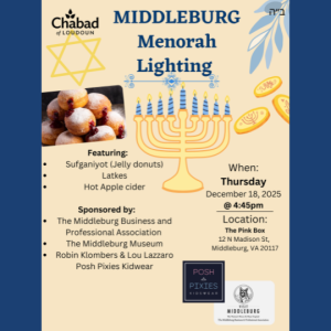 Celebrate the Festival of Lights with a special event on December 18! The community is invited to light the menorah and enjoy latkes, sufganiyot (jelly donuts) and hot apple cider!