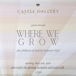 The gallery will celebrate the opening from 5–7 pm on May 9, with an artist talk at 5:30 pm. Visitors are encouraged to stop by while in town for Art in the Burg.